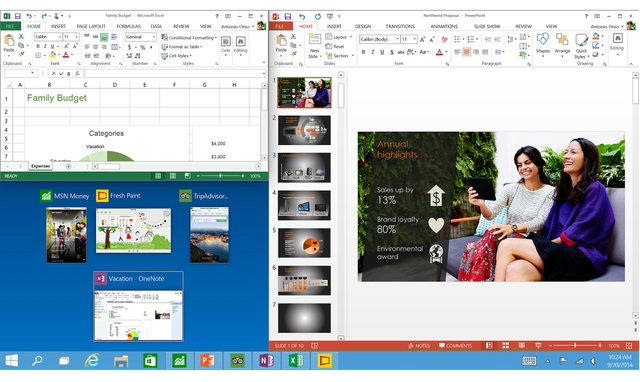 Windows 10 đi kèm với Microsoft Edge, một trình duyệt hoàn toàn mới được xây dựng để cung cấp trải nghiệm web tốt hơn cho bạn. Hãy viết hoặc nhập ghi chú trực tiếp trên trang web và chia sẻ chúng với người khác, đọc các bài viết trực tuyến mà không bị mất tập trung, đồng thời lưu các tài liệu đọc mà bạn yêu thích để truy cập sau. Và với Cortana3 được bật, bạn nhận quyền truy cập tức thì vào các tác vụ chính, như đặt chỗ hoặc đọc các bài đánh giá mà không phải rời trang mà bạn đang truy cập.
